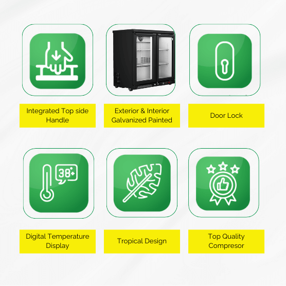 Hoshizaki Back Bars come in a stunning black coloured body and matching door frame and provide an attractive view of the displayed items – be it bottles or cans. The RBWH95 comes with 2 doors and can be specified individually or as part of a complete bar solution, giving you endless possibilities in bar design.