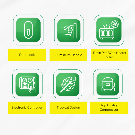 Commercial/Industrial Purpose Only With assistance from highly qualified and experienced professionals, we are engaged in offering a huge gamut of Two Door Refrigerator/ Freezer . These products are manufactured using high grade basic material and cutting edge technology. Further, these are stringently checked under the supervision of our quality controllers on various quality parameters set by the industry. In order to fulfill variegated demands of clients, these products are made available in several specifications. Features :Lower Power Coonsumption Tropicalised Emmerson Compressor Digital Display Castors Static Cooling with Fan.