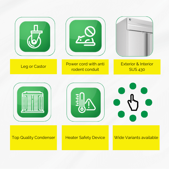commercial/Industrial Purpose Only With assistance from highly qualified and experienced professionals, we are engaged in offering a huge gamut of Two Door Refrigerator/ Freezer . These products are manufactured using high grade basic material and cutting edge technology. Further, these are stringently checked under the supervision of our quality controllers on various quality parameters set by the industry. In order to fulfill variegated demands of clients, these products are made available in several specifications. Features :Lower Power Coonsumption Tropicalised Emmerson Compressor Digital Display Castors Static Cooling with Fan.