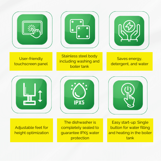| Wash Capacity | 70 racks/hr |